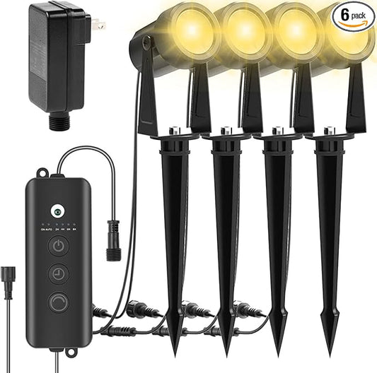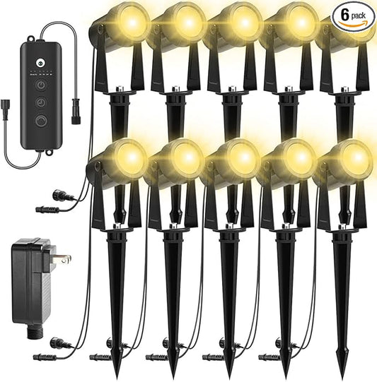 ZYAN Low Voltage Landscape Spotlights LED Landscape Lighting with Sensor, IP65 Waterproof Outdoor Lights for Yard Garden Pathway, Plant Tree Spoltights Dimmable with Timer, Auto ON/Off (6 Pack)