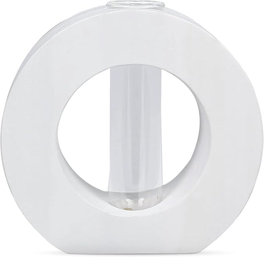 Young's Inc White Stoneware Vase – Modern Organic Decorative Home Accent, Textured Ceramic Table Centerpiece with Sculptural Curves, 7 inch Tall