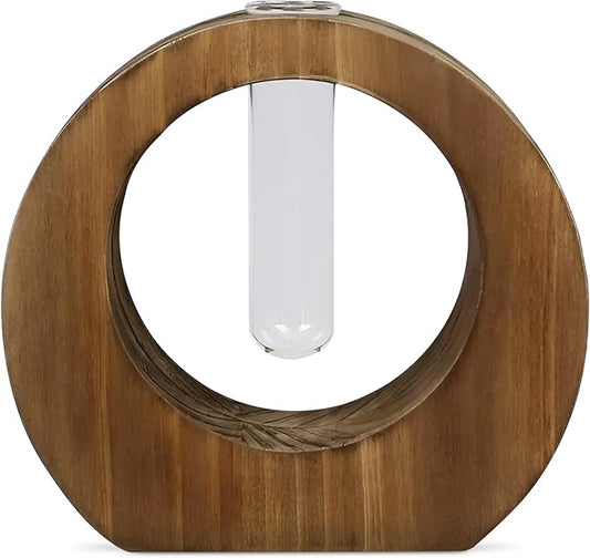 Young's Inc Wood Tabletop with Glass Tube Vase, Propagated Plant Holders for Home Decor, Boho Flower Vase for Flower Display, Handcrafted Antique Vase