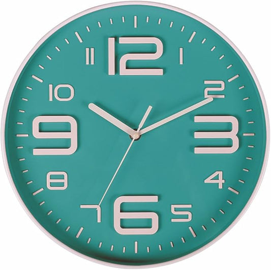 Zaoniy Non-Ticking Silent Quartz Wall Clock with Big 3D Number Modern Design Quiet Sweep Movement Indoor Decorative for Living Room Kitchen Wall Clocks Battery Operated 10-Inch (Bluegreen)