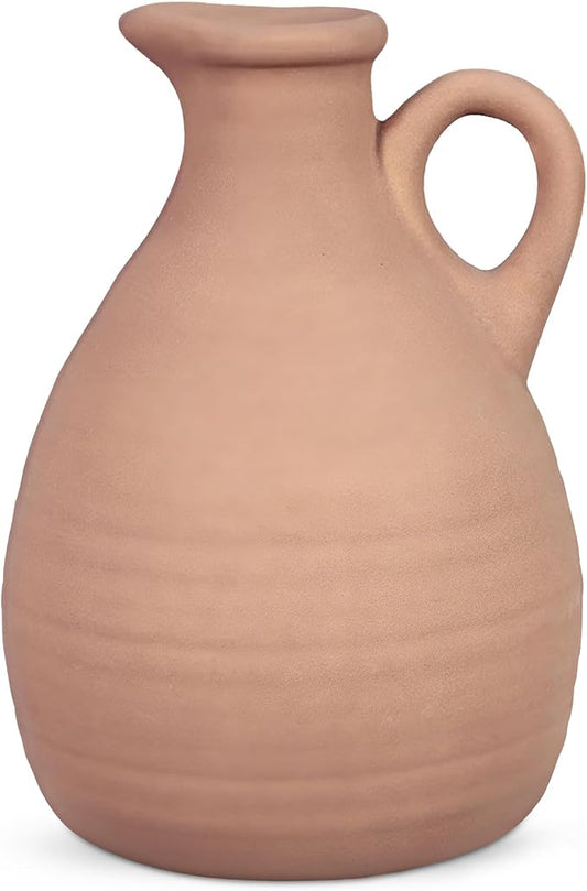 Young's Inc Terracotta Stoneware Wide Bottom Vase - Modern Rustic Decorative Orange Table Centerpiece,Sculptural Accent for Home Decor, 3.6 inch Tall