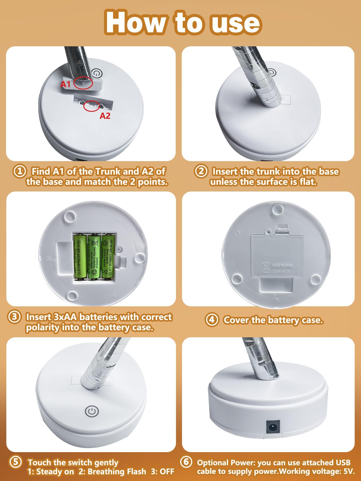- USB & Battery Powered & Touch Switch: This twinkling twig trees lights can be powered by USB or 3 AA batteries (Each tree lights requires 3xAA batteries, batteries are not included), you can choose any method flexibly, and are not limited by power sources and sockets, making these lights extremely portable. And it has a simple touch on/off function, safe and easy to use