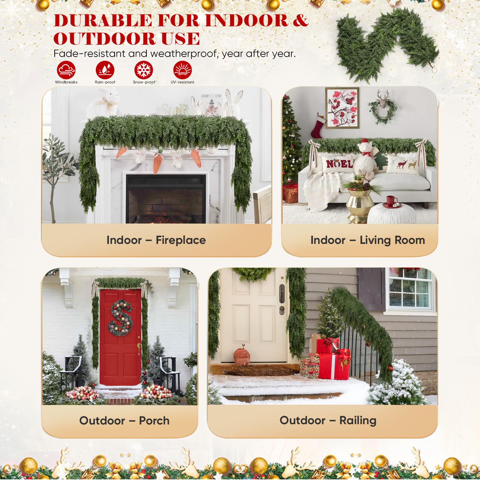 - 【No Shedding, Reusable Storage — Mess-Free Year After Year】Unlike fresh greenery, needles stay put—no dropping debris or sticky sap, keeping floors and furniture clean. After the season, fluff it lightly, then store hung or laid flat to preserve volume for next year. This timeless Christmas decor saves you both time and money, with minimal reshaping needed.