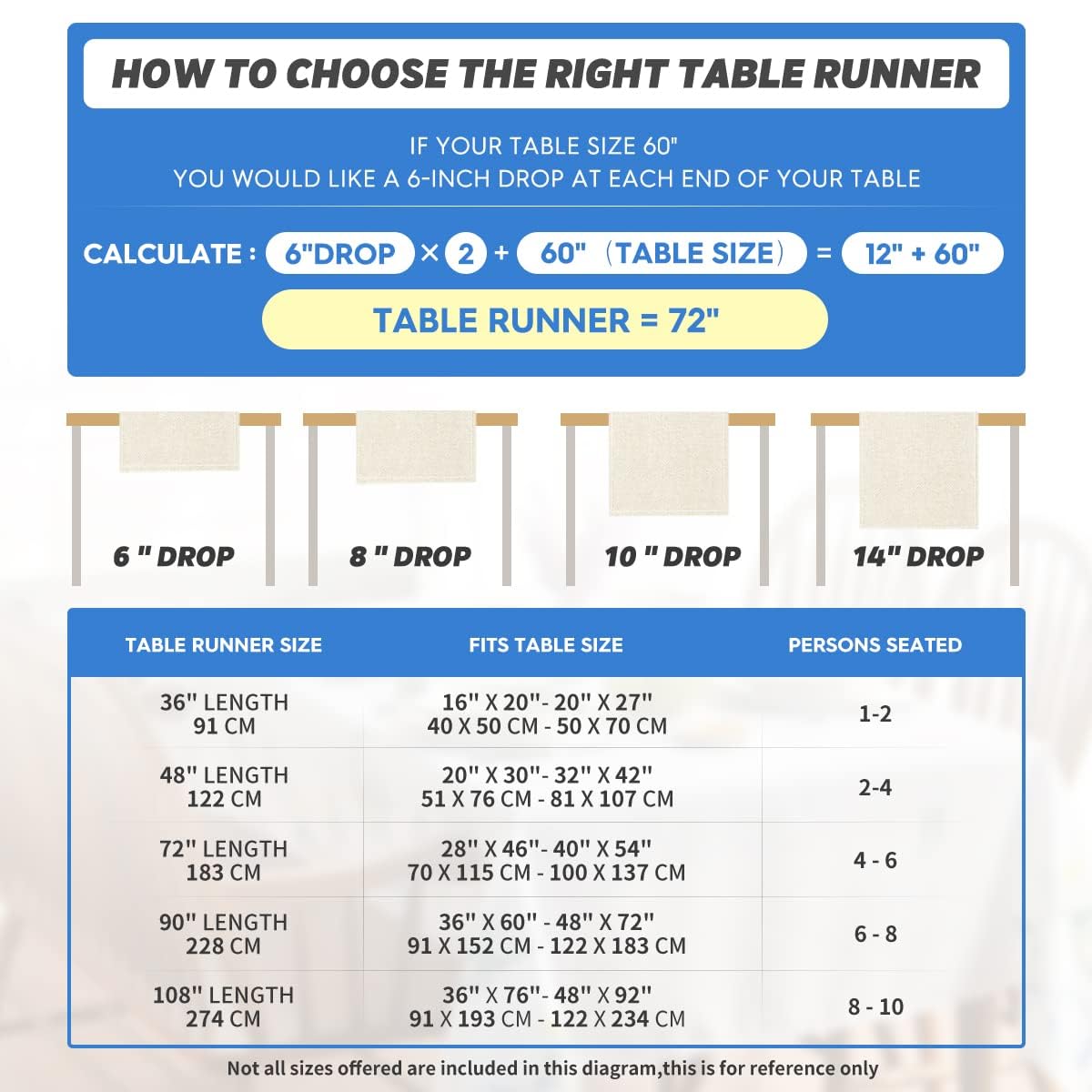 - Fits Table Size : This table runner is 13 x 72 inch, appropriate for a table that can seat 4-6 people, better match your table and give you a delightful dining experience