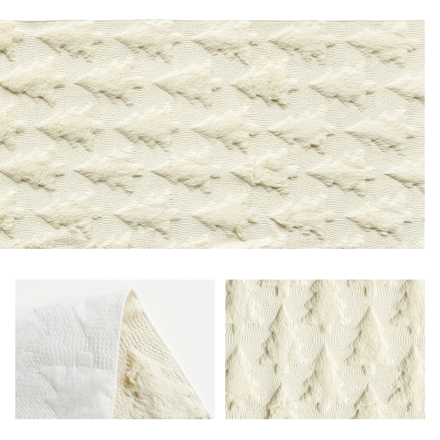 Artoid Mode Christmas Trees Beige Soft Plush Faux Fur Jacquard Christmas Table Runner, Holiday Kitchen Dining Table Decoration for Home Party Decor 13x72 Inch