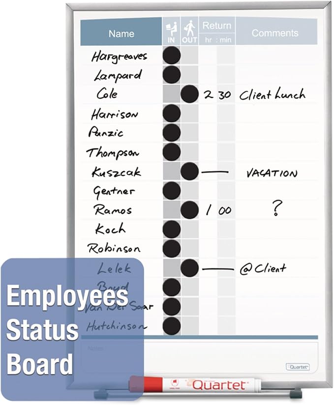 - Magnetic board includes flexible mounting system, marker tray, Quartet dry erase marker and magnets