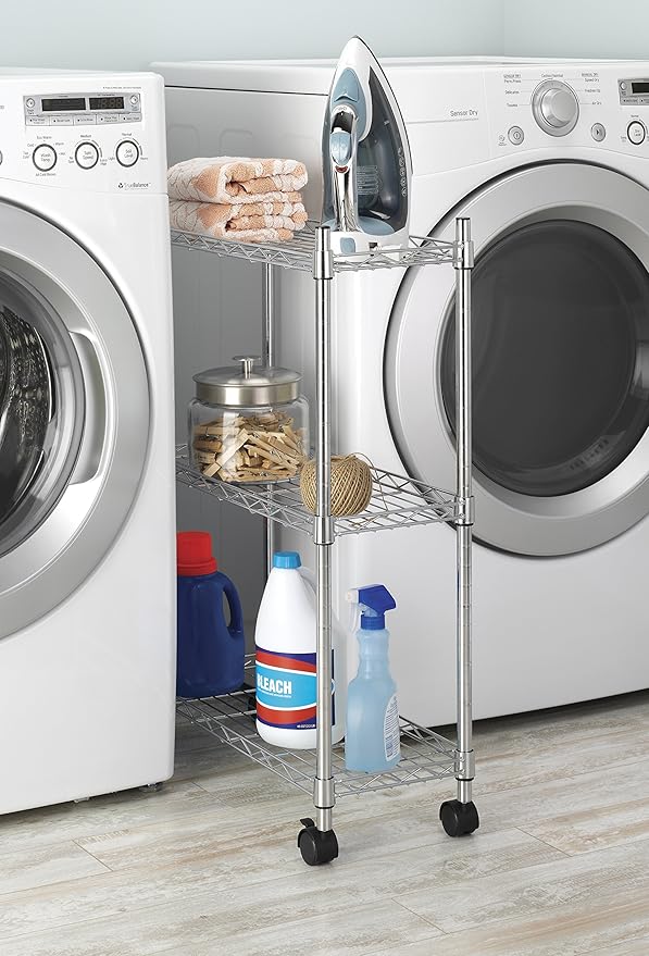 Whitmor 3 Tier Shelving Unit, Metal Storage Shelves, Adjustable Heavy Duty Shelf with Wheels , 400 lbs Capacity per Shelf, 1200 lbs Total for Home, Garage, Workshop, 23"L x 13"W x 30"H, Chrome