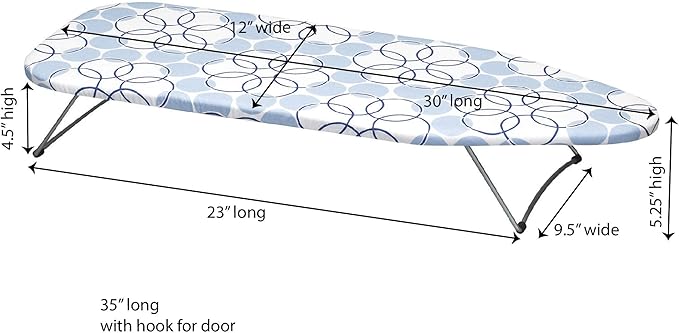 Household Essentials 122101 Small Tabletop Ironing Board with Folding Legs - Magic Rings Cover and Pad,Blue Rings