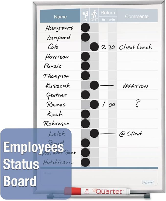 - Magnetic board includes flexible mounting system, marker tray, Quartet dry erase marker and magnets
