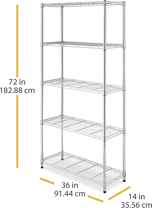 - Height Adjustable: The the size of wire shelf rack is 36"L x 14"W x 72"H. You can adjust the height of the shelves as needed to accommodate items of different sizes, ensuring optimal space utilization efficiency.