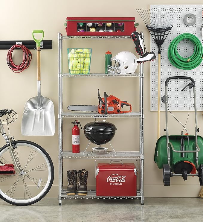 Whitmor 5 Tier Shelving Unit, Metal Storage Shelves, 400 lbs Capacity per Shelf, 2000 lbs Total, Adjustable Heavy Duty Shelf, Easy Assembly for Kitchen, Garage, Plant, 36"L x 14"W x 72"H, Chrome