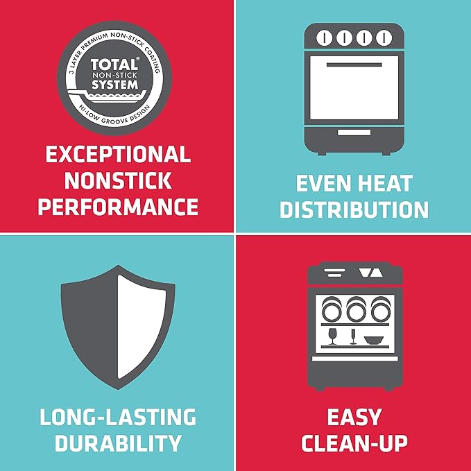 - SUPERIOR NONSTICK: TOTAL Nonstick System of raised circles and triple layer, premium quality nonstick for long-lasting food release and easy cleanup