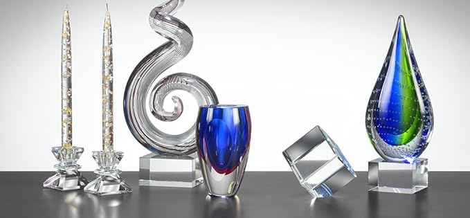 - Instantly transform your home decor with a gorgeous Murano-style art glass sculpture mounted on an elegant clear crystal base.