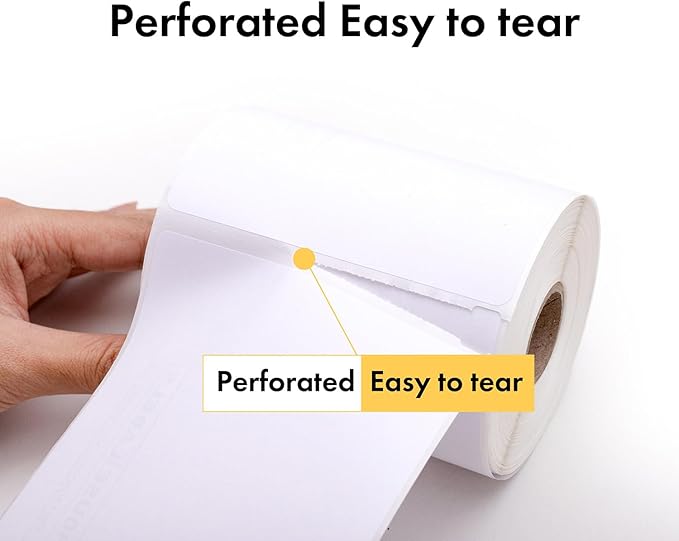 - Bright white, premium direct thermal label with a strong, long-lasting adhesive for any flat surface. Perforated between labels - easy to tear.