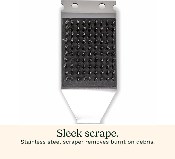 - HEAVY-DUTY STAINLESS STEEL: Grill brush and scraper made from rust-resistant stainless steel, so this BBQ brush is built to last! The sturdy bristles and scraper effortlessly remove debris, making it the ideal BBQ grill cleaner for outdoor grills.