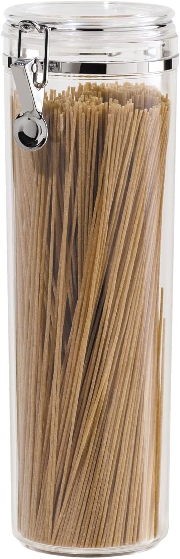 - GREAT VALUE 58 fluid oz AIR TIGHT CANISTER: This essential and decorative kitchen must have canister is suitable for storing spaghetti and other dried pasta.