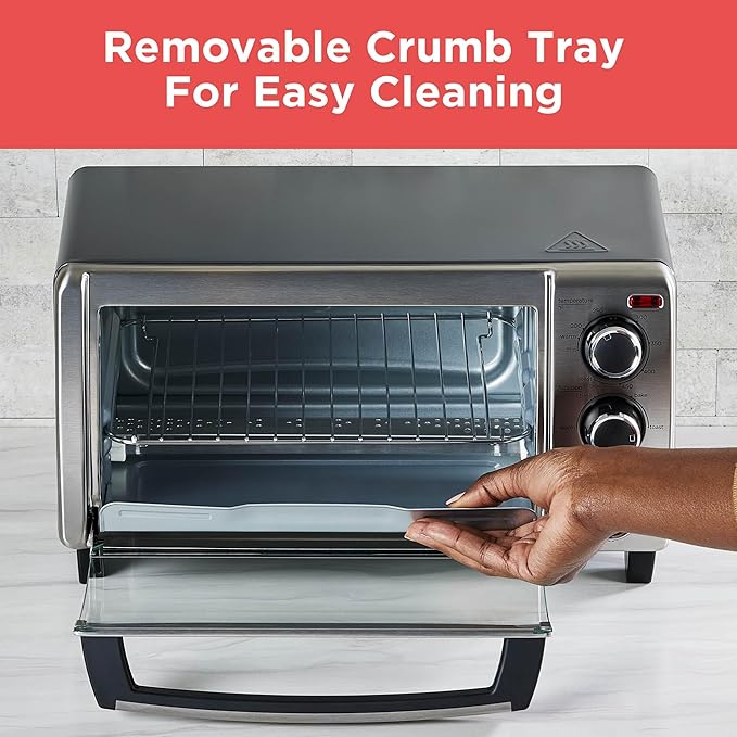 - Removable Crumb Tray - Keep the toaster oven clean with the convenient removable crumb tray.