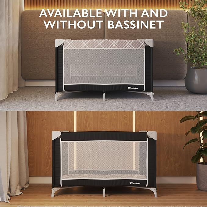 - Roomy Interior - This play pen offers a spacious 37" x 25" area with a 3/4" high-density foam mattress offering a comfortable sleep space. A bassinet option suitable for infants up to 15 lbs is sold separately.