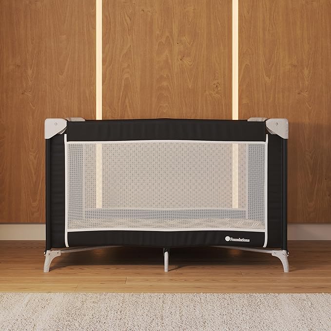 Foundations Sleep 'N Store Baby Pack and Play Yard - Portable Playpen for Toddlers, Foldable Travel Playpen with Storage Bag & Foam Mattress, Durable Design for Hotels & Daycares - Graphite