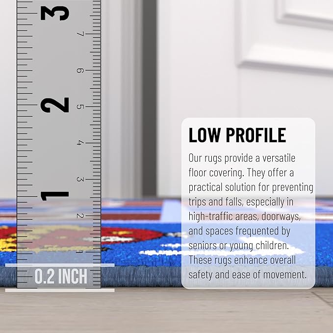 - [ULTRA THIN]: A ultra thin pile thickness of 0.2 inches offers ideal functionality that is perfect for busy areas, underneath furniture, and in entryways as it will not obstruct doorways.