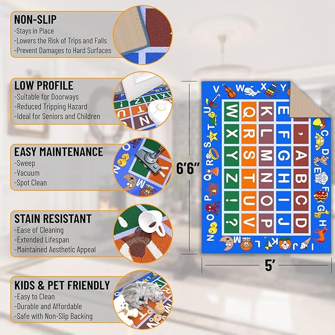 - [TRENDY STYLE]: This Colorful Educational Alphabet Design Area Rug features colorful hopscotch design for children of all ages to enjoy adding color and enhancing the look of your home Its timeless design can be integrated into a variety of home décor styles