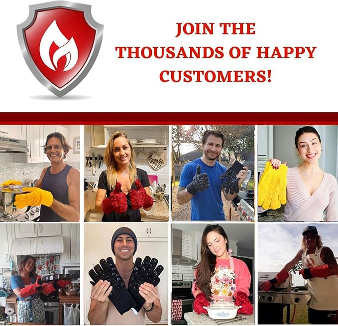 Grill Armor Oven Gloves 932°F Extreme Heat & Cut Resistant Oven Mitts with Fingers for BBQ, Cooking, Grilling, Baking – Accessory for Smoker, Cast Iron, Fire Pit, Camping, Fireplace and More