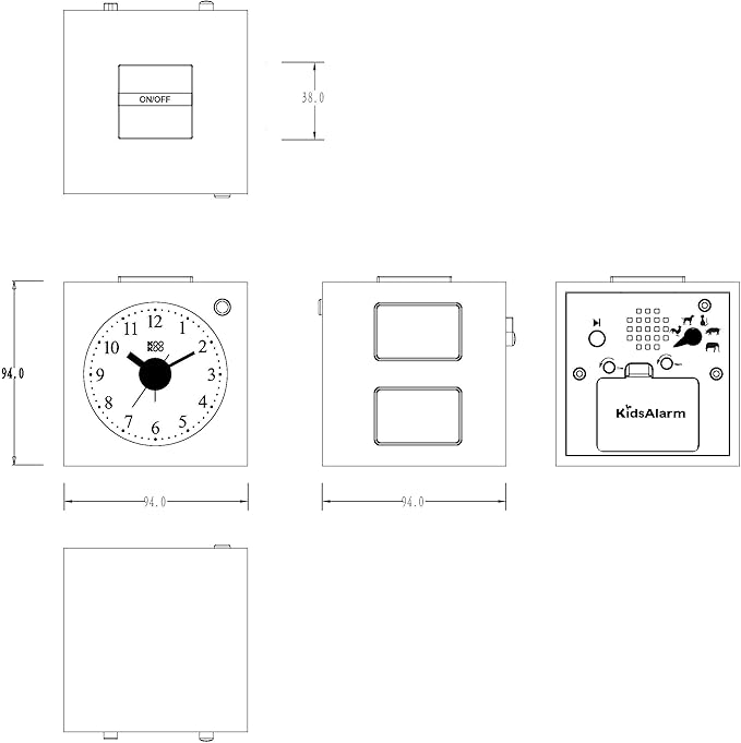 - You’re no morning person? Never mind, this clock will put a smile on your lips at the start of the day. Square-shaped children’s alarm clock with 5 brightly coloured magnet animals with corresponding animal sounds. By Maia Ming Designs.