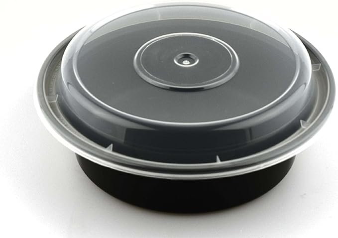 - Excellent Black Round Containers with Clear Lids. Perfect to freeze food due to it's freezer safe character, so store away your extra food, microwave it afterwards and serve as a delicious lunch or dinner.