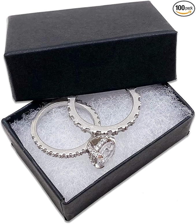 TheDisplayGuys - 100-Pack #10 Cotton Filled Cardboard Paper Jewelry Boxes Gift Case - Matte Black (1.9" x 1.3" x 0.7") - for Shipping or Storage