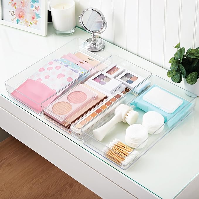 - Experience unparalleled versatility with our stackable design, perfectly suited for a myriad of items including cosmetics, jewelry, kitchen utensils, and office supplies. Say goodbye to cluttered spaces and hello to streamlined organization as these trays effortlessly maximize every inch of available space, transforming even the most chaotic drawers into orderly spaces.