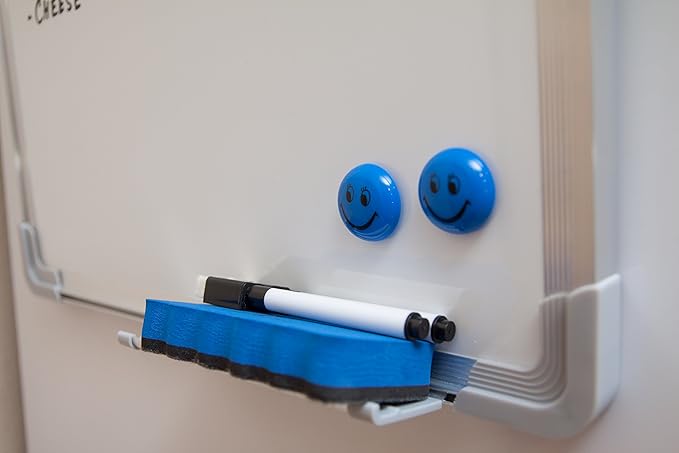 - PREMIUM SET - contains 1 wall mounted wipe board with 1 blue magnetic dry eraser, 4 magnetic colorful markers and 4 magnets.
