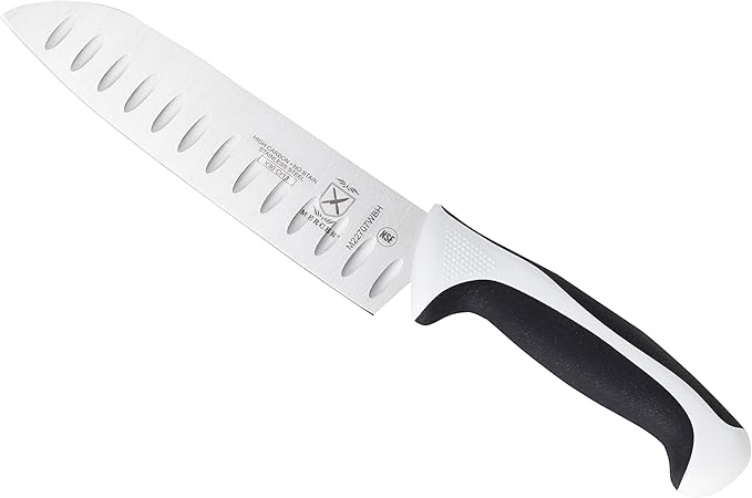 Mercer Culinary Millennia Color Handle Cutlery 7" Santoku Knife (Granton Edge) White