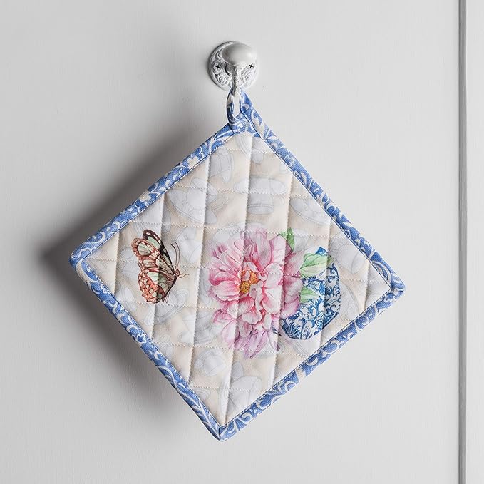 • Package includes: 1 pot holder measures 8"x8". Ideal as a hot pad for dishes, coffee pots, cast iron pans, or cookware. Designed in Europe and Made in India, it blends style, function, and comfort into a daily kitchen essential
