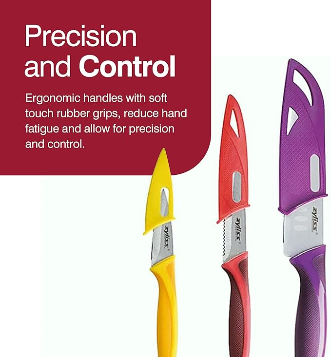 Zyliss 3 Piece Mini Santoku Knife Set with Sheath Covers, Stainless Steel/Pur...