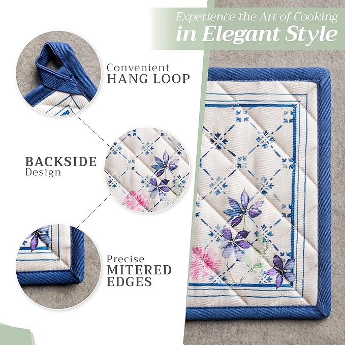 • 100% Quilted cotton: Made from premium quilted cotton, our pot holder ensures safe handling of hot pans or dishes. The soft, durable build provides excellent heat resistance and grip—perfect for everyday cooking and baking needs