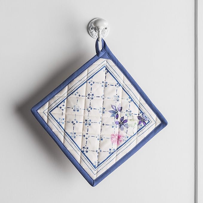 • Package includes: 1 pot holder measures 8"x8". Ideal as a hot pad for dishes, coffee pots, cast iron pans, or cookware. Designed in Europe and Made in India, it blends style, function, and comfort into a daily kitchen essential