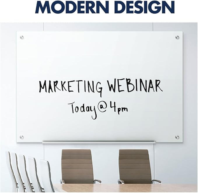 - CLEAN ERASE – Non-absorbent glass lets you write, erase and rewrite on a clean surface. The 72"W x 48"H (6' x 4') board is both stain and ghost resistant, so your message can be communicated without distracting streaks