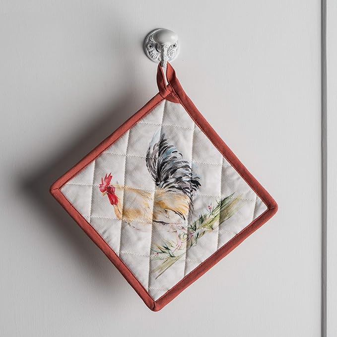 Maison d' Hermine Pot Holders Set 100% Cotton Heat Resistant Potholders 8" x 8" Hot Pads with Loop BBQ, Cooking, Baking, Grilling, Kitchen, Handling Hot Pans Spring/Summer (Pack of 2, Campagne)