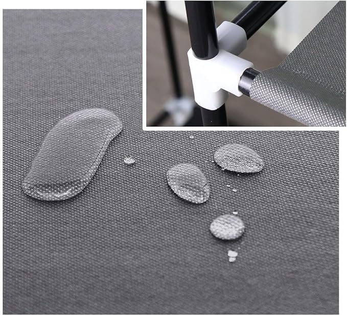 - Non woven fabric zippered cover, not the sliding curtains. High quality steel tube. PP plastic connectors.
