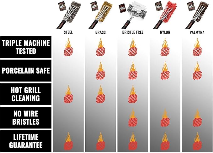 - Keep Your Family Safe - Traditional wired grill brushes can easily shed bristles. Our triple-helix coiled wire design ensures your grill gets cleaner than ever, and your family can enjoy delicious bbq without worry!