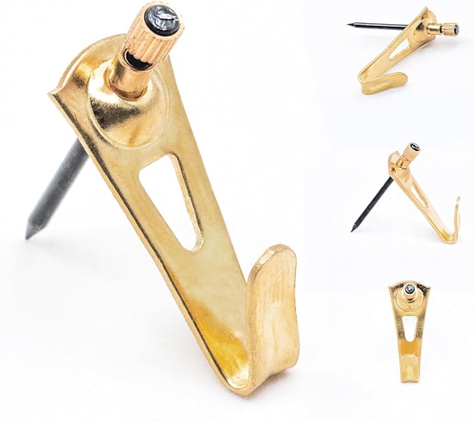 - Professional Quality: Picture hanging hooks heavy duty enough for museums and galleries; durable brass-plated frame hooks paired with blue steel nails; reliable wall hangers for heavy mirrors and large picture hangers