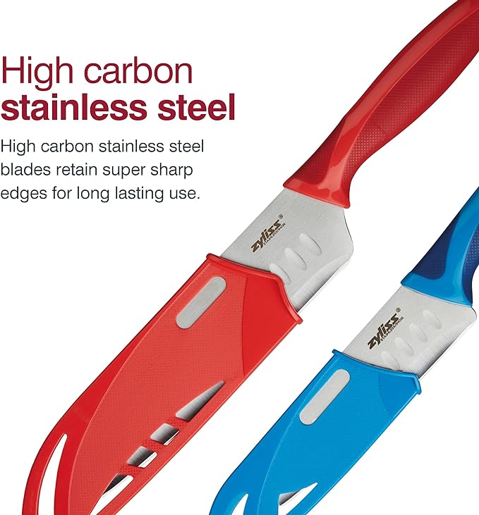 ZYLISS 2 Piece Santoku Knife Set with Sheath Covers, Stainless Steel