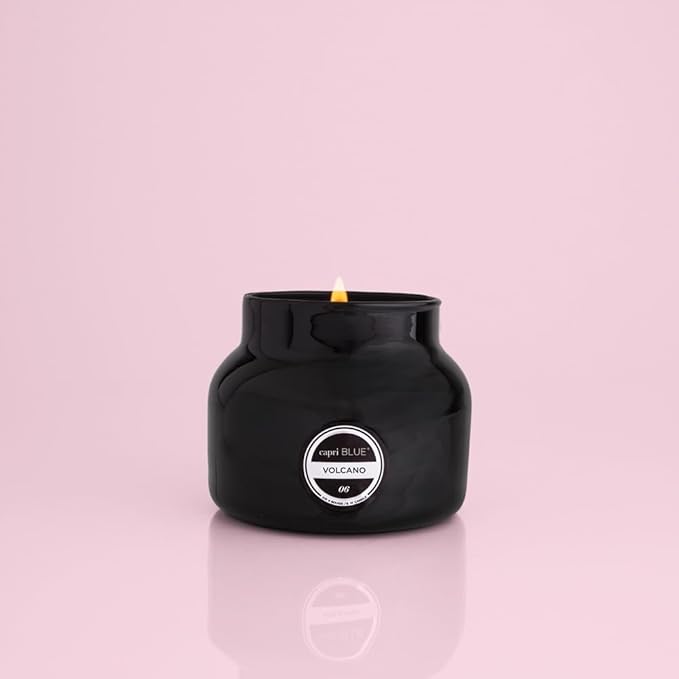 - Capri Blue Petite Jar Candles - This tiny petite is having a big moment. Bold and chic, this black candle is sure to add a little something to any room. This Capri Blue Volcano candle has a burn time of up to 40 hours.