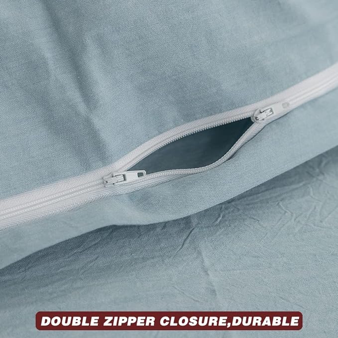 FACE TWO FACE Bedding Duvet Cover Set 3 Pieces 100% Washed Cotton Duvet Cover Linen Like Textured Breathable Durable Soft Comfy (Queen, Light Blue)