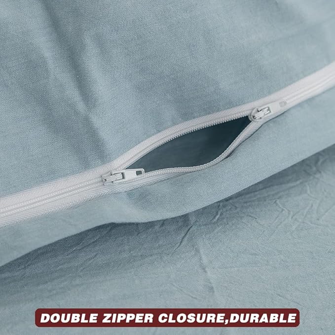 FACE TWO FACE Bedding Duvet Cover Set 3 Pieces 100% Washed Cotton Duvet Cover Linen Like Textured Breathable Durable Soft Comfy (King, Light Blue)