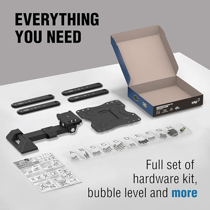 - QUICK & SIMPLE INSTALLATION: With a clear instruction guide and a complete hardware kit, will help you get your TV on the wall perfectly for the first time. This product includes a full set of factory assembled components packed individually into bags for extra protection and a complete pack for installation (all necessary screws, washers, spacers, and a bubble level).