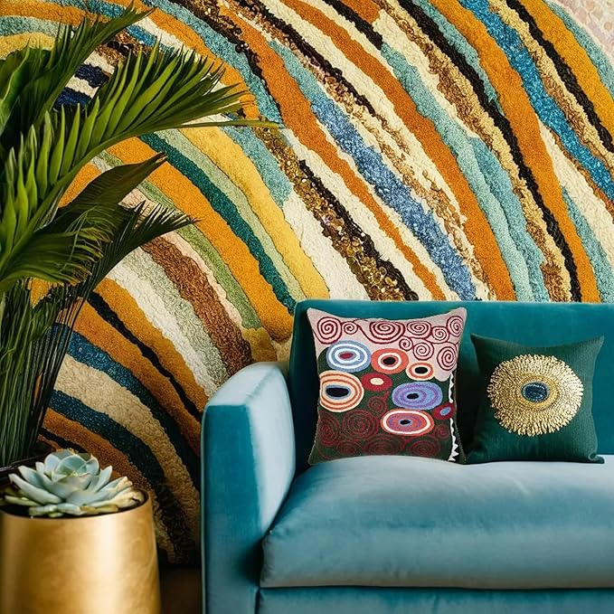- ❤ FABULOUS EYE-POPPING CHAIN STITCHES: This hand embroidered colorful suzani art nouveau all modern accent pillow will liven up a transitional or modern style home or office. This modern outdoor pillow cover would spark up an old throw pillow or grace a new pillow form as a modern farmhouse pillow. From the patio to the living room, from den to bedroom, from study to kids room, these fabulous eye-popping all modern art pillows can be used virtually anywhere to refresh your home decor.
