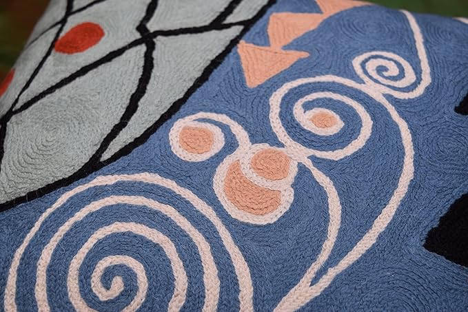 Klimt Blue Modern Couch Pillow Cover | Blue Contemporary Throw Pillows | Abstract Modern Chair Cushion | Modern Outdoor Pillow | Mid Century Chair Cushions | Handmade Wool Size 18x18