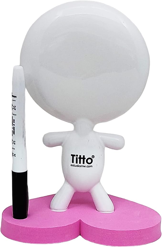 - DRY ERASE BOARD: Titto, is a funny whiteboard doll that will attract attention on all desks and workplaces. Ceramic desk whiteboard doll with colours soft base to stand . Looks great in your desk, office, living room, kitcchen or bedroom. Titto Star measures 5.1 x 3.5 x 7.5 inches.