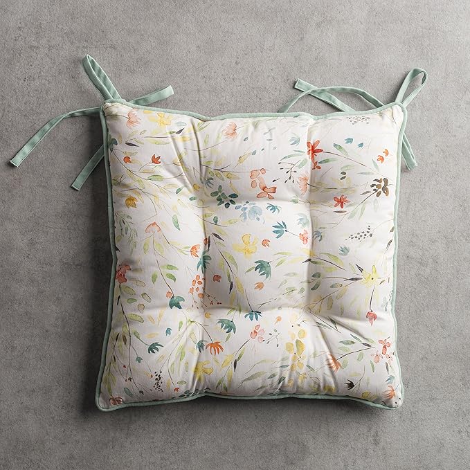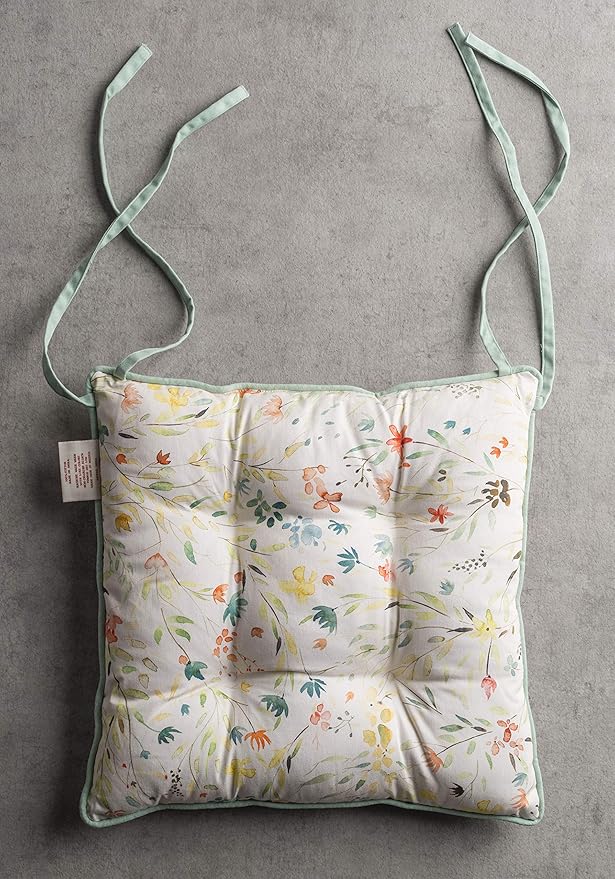 Maison d' Hermine Chair Pads for Dining Chairs Cotton Outer Fabric and Poly Filling 16"x16" Patio Seat Cushions for Furniture with Ties Home Chair Party Hall Farmhouse (Colmar, Pack of 2)